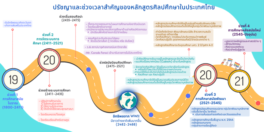 ภาพที่ 4 สรุปปรัชญาและช่วงเวลาสำคัญของหลักสูตรศิลปศึกษาในประเทศไทย ที่มา: พัฒนาจากข้อมูลที่ผู้เขียนสรุป